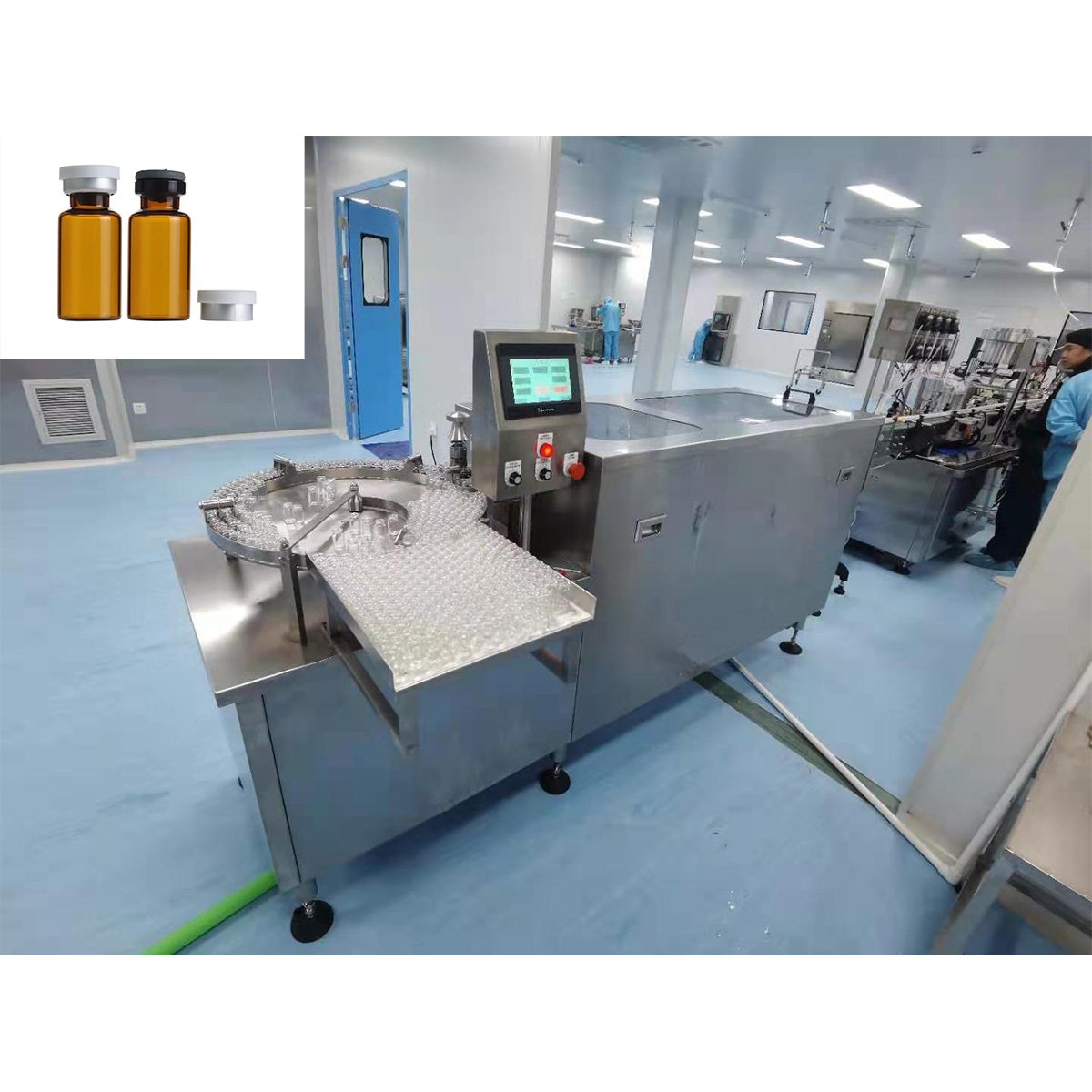 The vial liquid filling production line mainly consists of an automatic bottle washing machine, a tunnel sterilization oven, a vial filling and capping machine, a labeling machine, and other equipment. It adopts PLC control, touch screen operation, and peristaltic pump filling, ensuring high filling accuracy. The entire production line is manufactured in full compliance with the GMP standards and is widely used in the pharmaceutical, food, healthcare, and chemical industries.